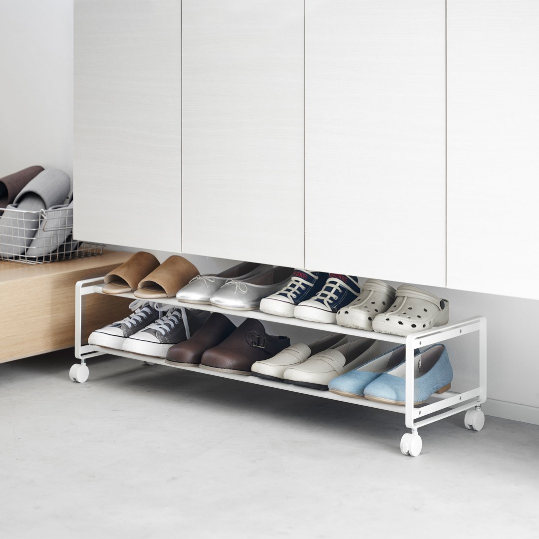 Transform wasted space under your bed, credenza, or closet into smart shoe storage with the Tower Rolling Shoe Rack. This low-profile 2-tier organizer holds up to 10 pairs of shoes and rolls on smooth-gliding casters with locking brakes, so you can access your footwear in seconds—then tuck it away just as fast.