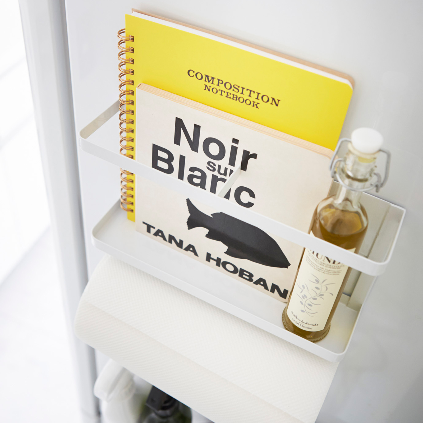 Put that fridge to *work*! A blank fridge is a missed opportunity! This simple, functional kitchen rack puts this under-utilized surface to good use by keeping frequently used items off of the counter, yet quickly accessible. Attach the strong magnet to your fridge in seconds and start piling on everything from paper towels to pot holders and hanging utensils. Your most-used items, within hand’s reach—now that’s convenient.