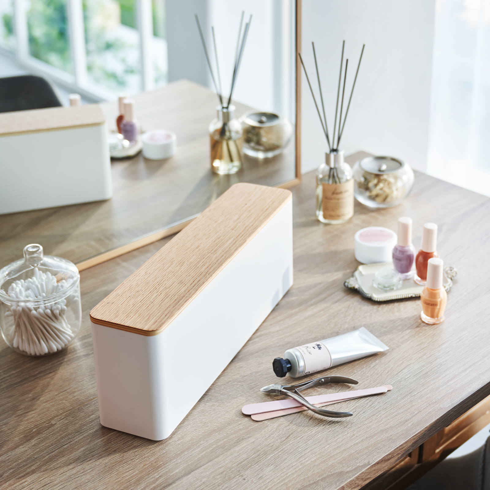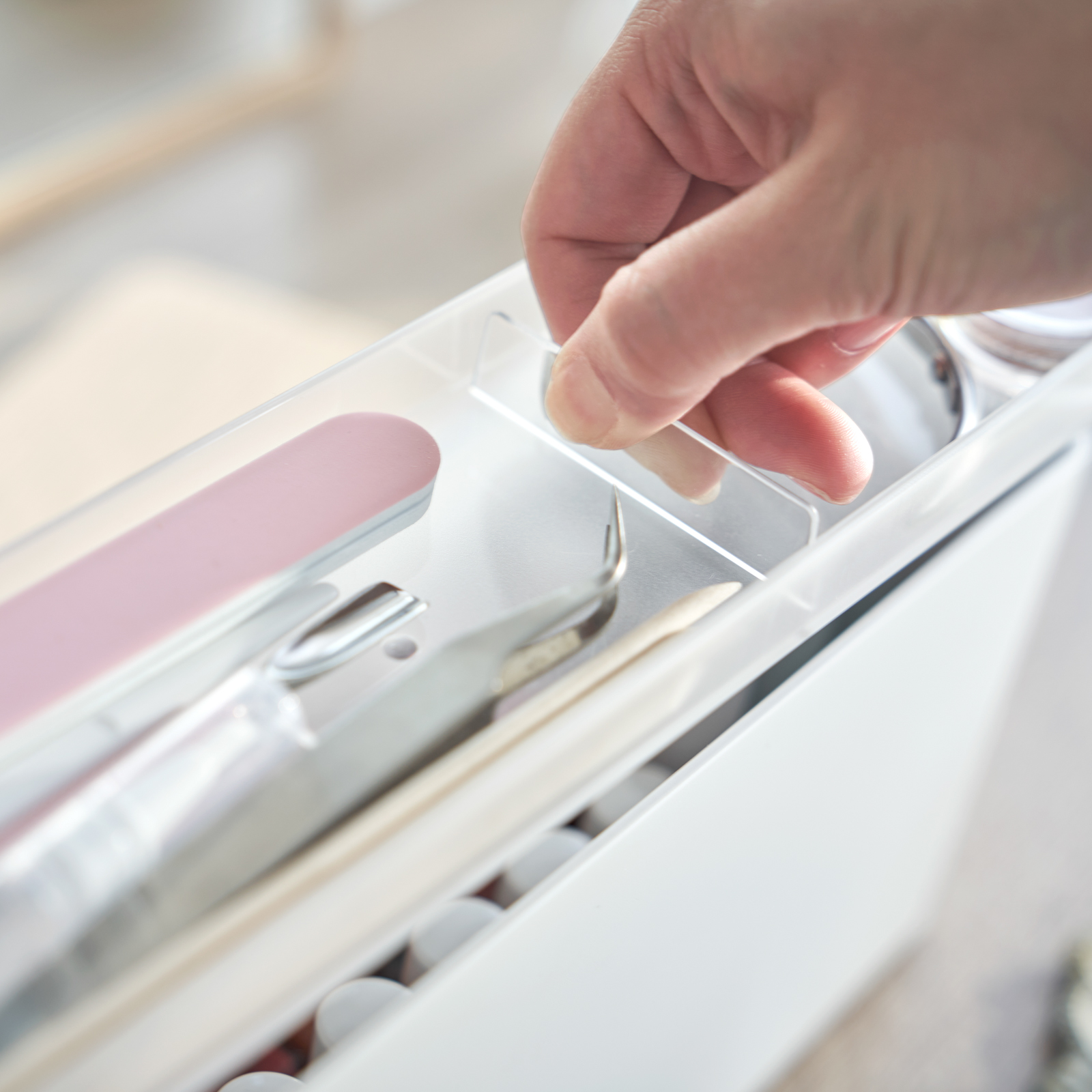 From bottom and top coats to glitter and gem finishes, keep your nail art goods looking tidy and ready to go for the next time inspiration strikes! Store your nail polish in the bottom and smaller tools like nail files, nail nippers, and cuticle pushers in the tray insert. Create a smart-looking personal nail salon without taking up much space on your vanity or bathroom counter.
