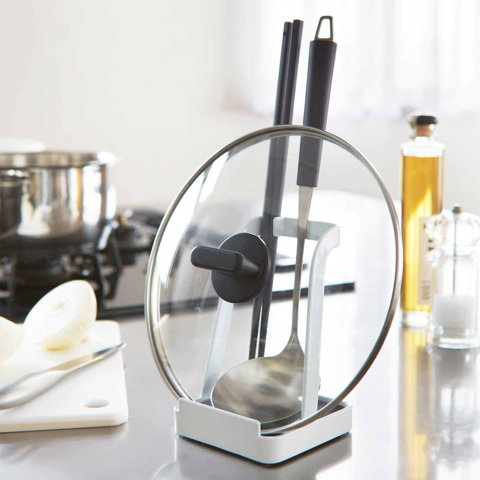 Keep countertops clean and mess-free with this award-winning ladle and lid rest. This fan-favorite, multipurpose tool will become your new staple cooking accessory. Pop on pan lids to prevent drips and drops and save on counter-space. Prop up cookbooks for easier, hands-free recipe reading. Finally, stand up an iPad or tablet in the kitchen or any other room of the home.