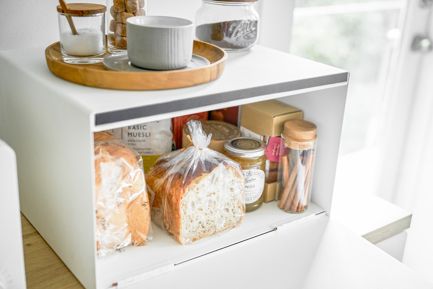 For example, we have a pet goldfish and keep gallons of water stored for biweekly tank changes. I really didn’t like seeing the buckets just sitting on the kitchen floor, so I purchased the 67-Inch Steel Storage Rack (Fridge) to organize the area. After that, I got the Bread Box to go with it—and from there, I kept adding more Yamazaki products. They’ve really helped me keep my kitchen neat and organized.
