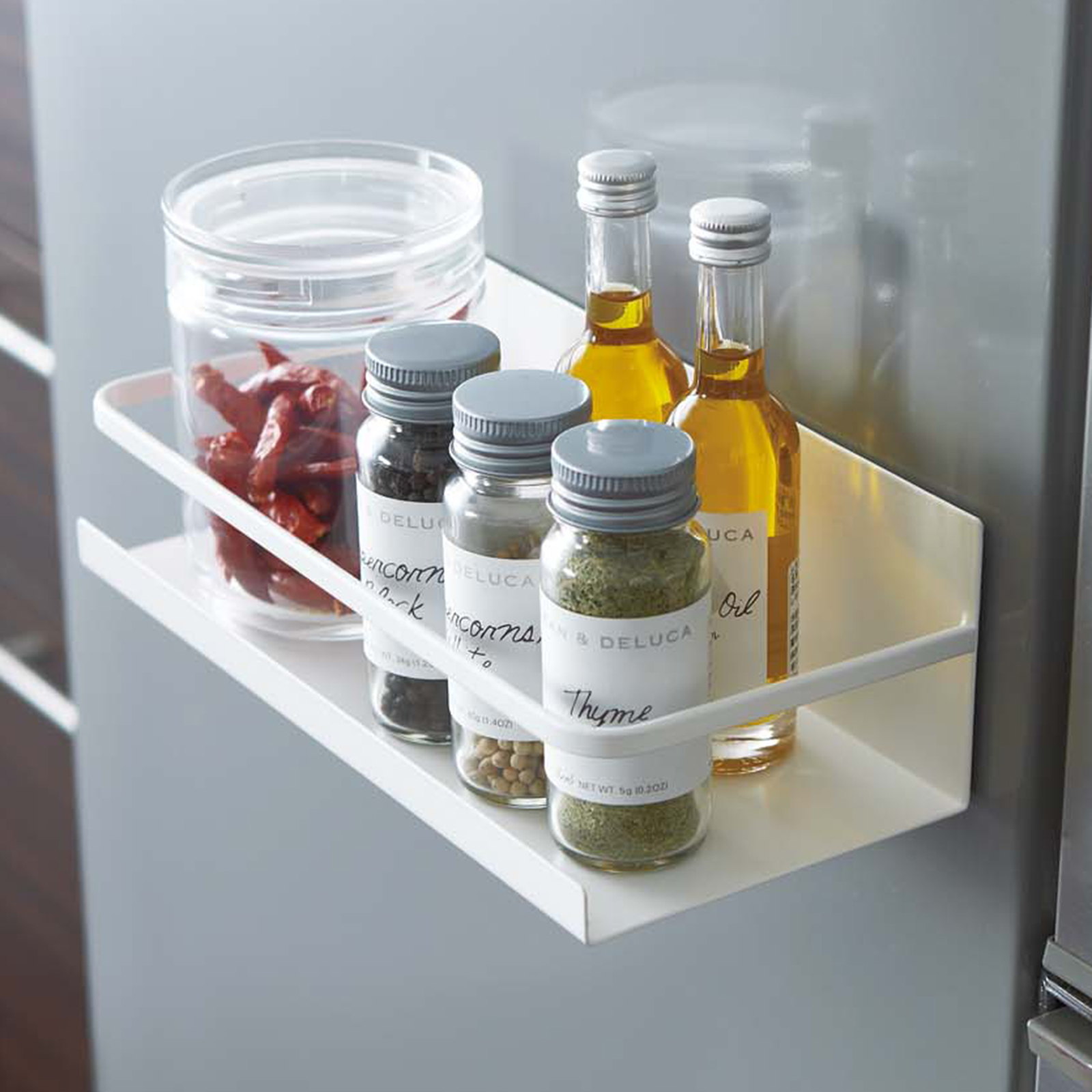 Ce favori des clients très apprécié est le rêve de tout organisateur. Libérez de l'espace précieux dans votre armoire ou votre plan de travail tout en gardant vos ingrédients les plus utilisés à portée de main. Collez-le sur votre réfrigérateur ou toute autre surface magnétique en quelques secondes et empilez les épices. Ne vous inquiétez pas, l'aimant puissant peut gérer toutes les épices ou huiles que vous lui jetez.