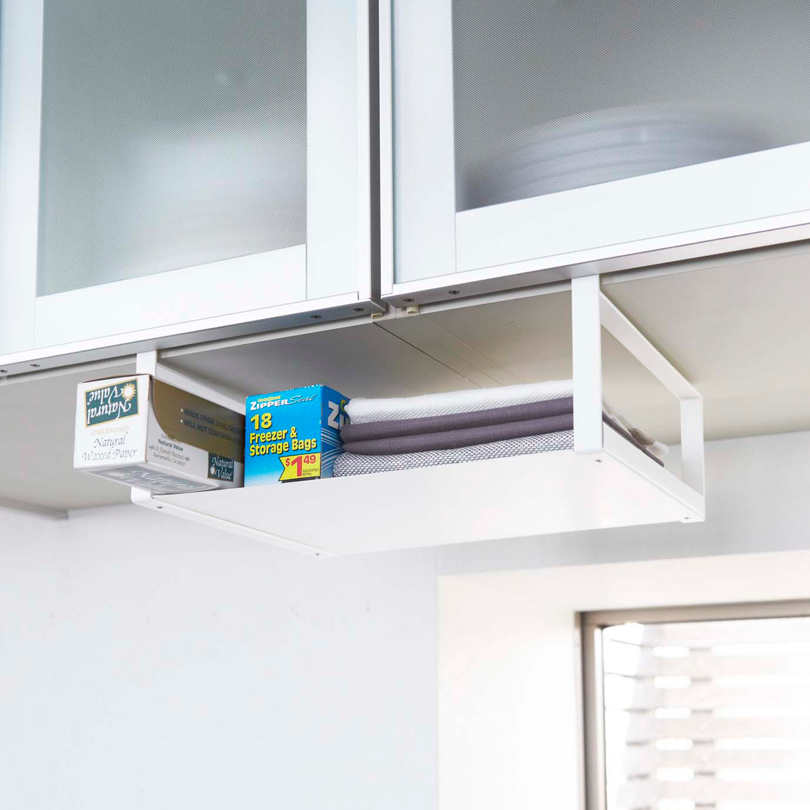 No matter how big the cabinet, it always seems to fill up! Rather than trying to squeeze more in the same amount of space, create storage out of thin air with these under-cabinet shelves that slide right into place. If you’ve got a shelf or a cabinet, this clever little rack will expand your storage. Perfect for spices, foils, parchment, and much more.