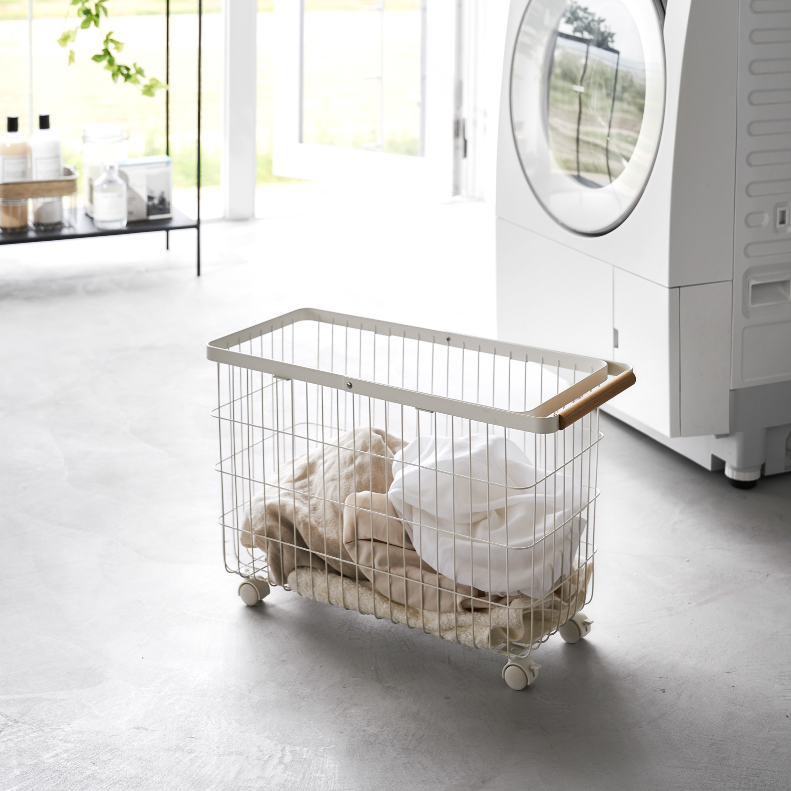This slim-profile laundry basket can hold a whole load without taking up much space. With sturdy caster wheels, it is easy to roll to and from your washer. The wire frame and wooden handles fit nearly any home aesthetic, while the narrow width and high profile make it easy to store anywhere in your home.