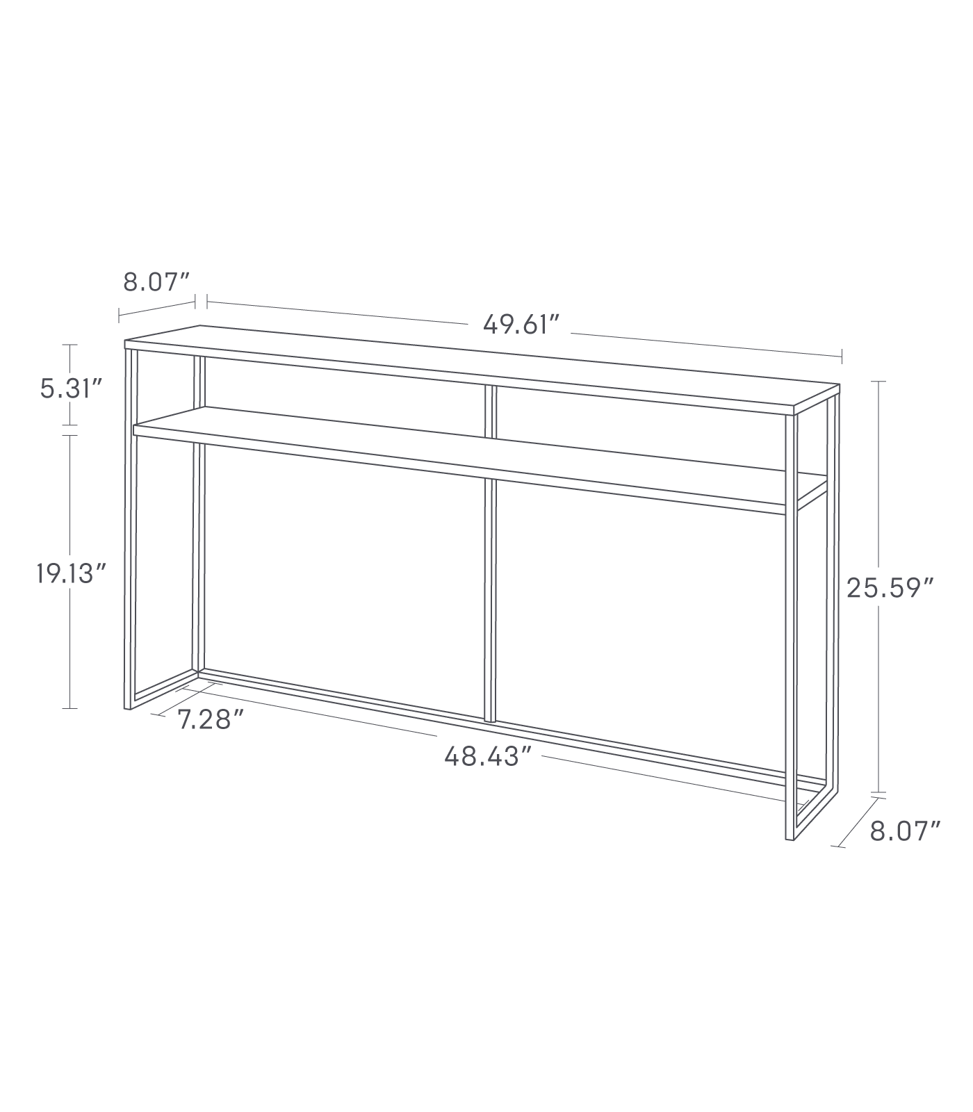 This luxuriously long yet stealthily slim console table will add just the extra storage you need in your entryway or behind the couch. With a natural woodgrain top and minimalistic steel legs, this sleek design magically makes everything placed upon it look intentionally styled. Keep your living room or entryway essentials on the table, umbrellas and other hanging items on the hooks, and perhaps top it off with some decor items to accentuate your space.