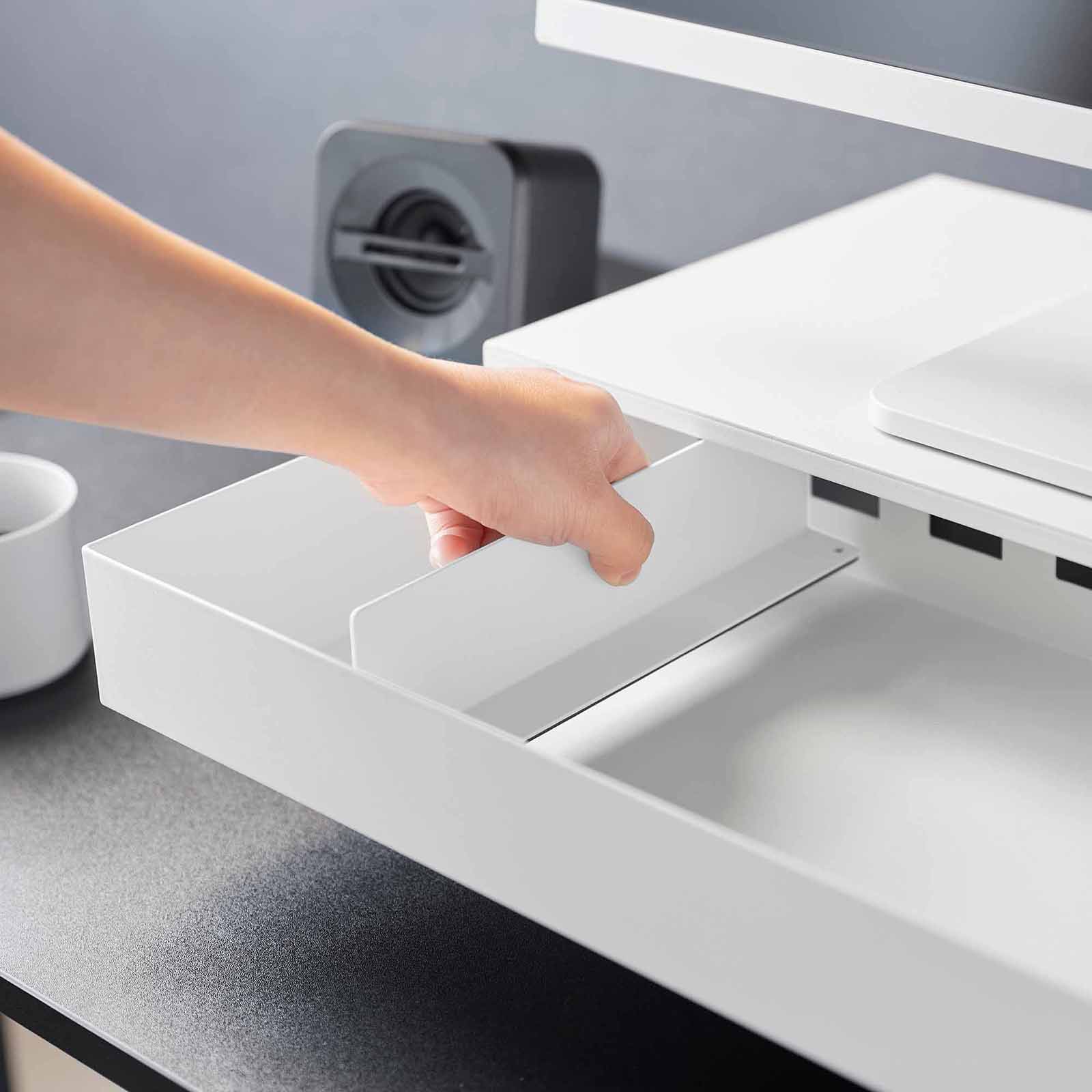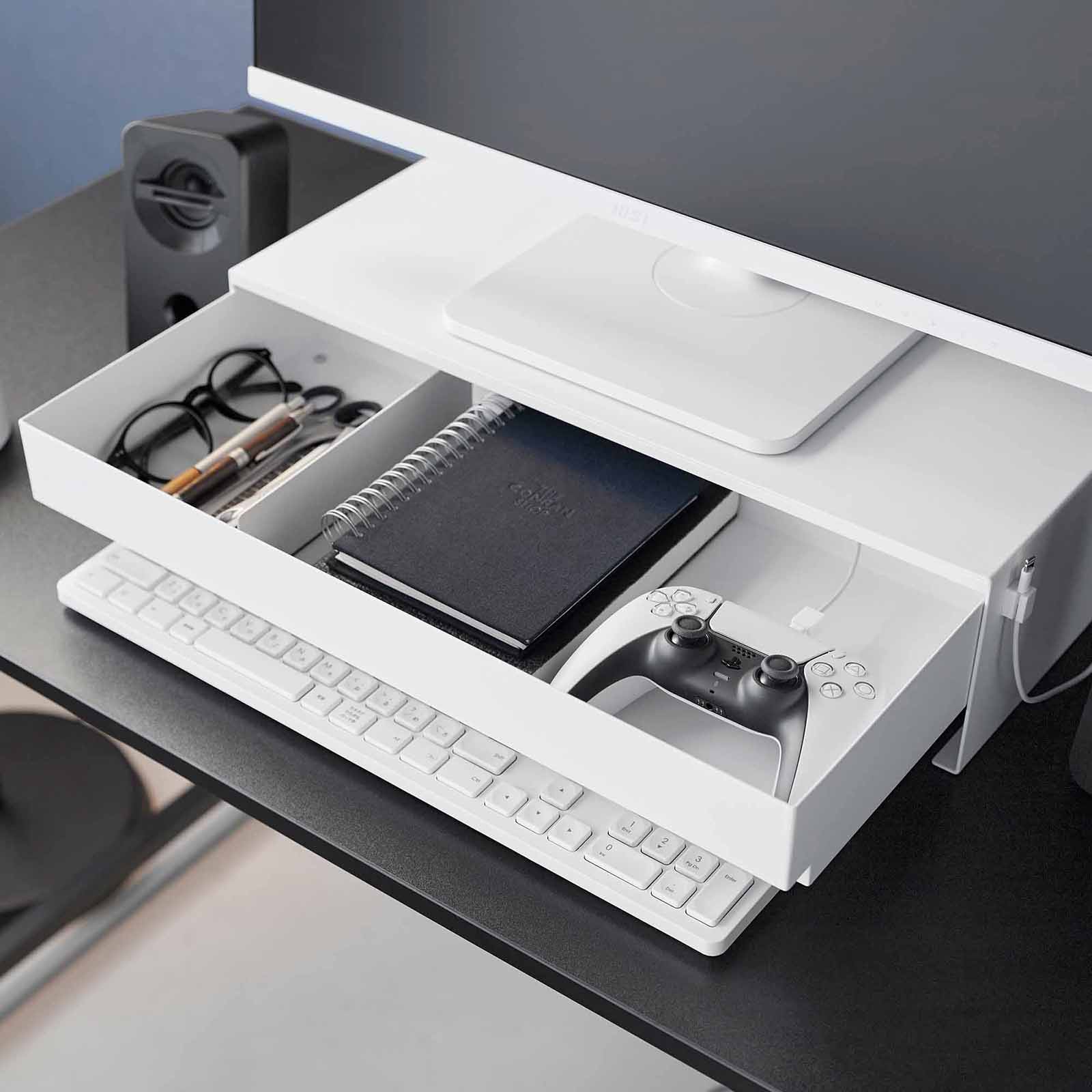 The drawer features a clever magnetic divider that can be easily repositioned, allowing you to customize the drawer to fit your essentials—whether it’s game controllers, office supplies, or small devices.
