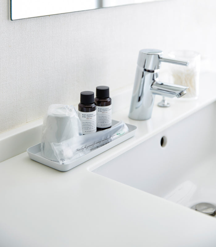 This organizer utilizes a two-tier pull-out shelf. Keep bathroom supplies stocked up and tucked away with this stylish and discreet organizer. Freshen up your space by placing a plant, candle, or incense on the warm natural wood top shelf.
